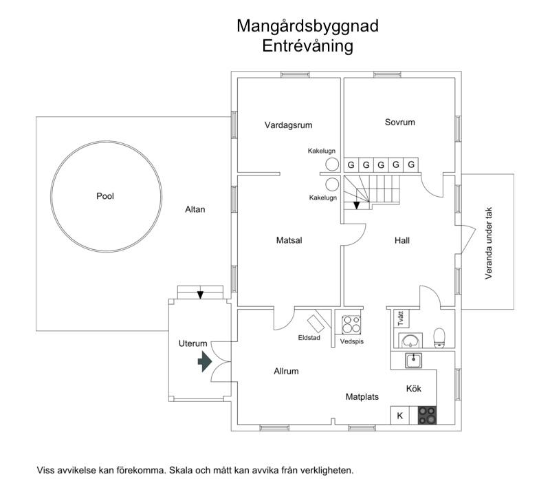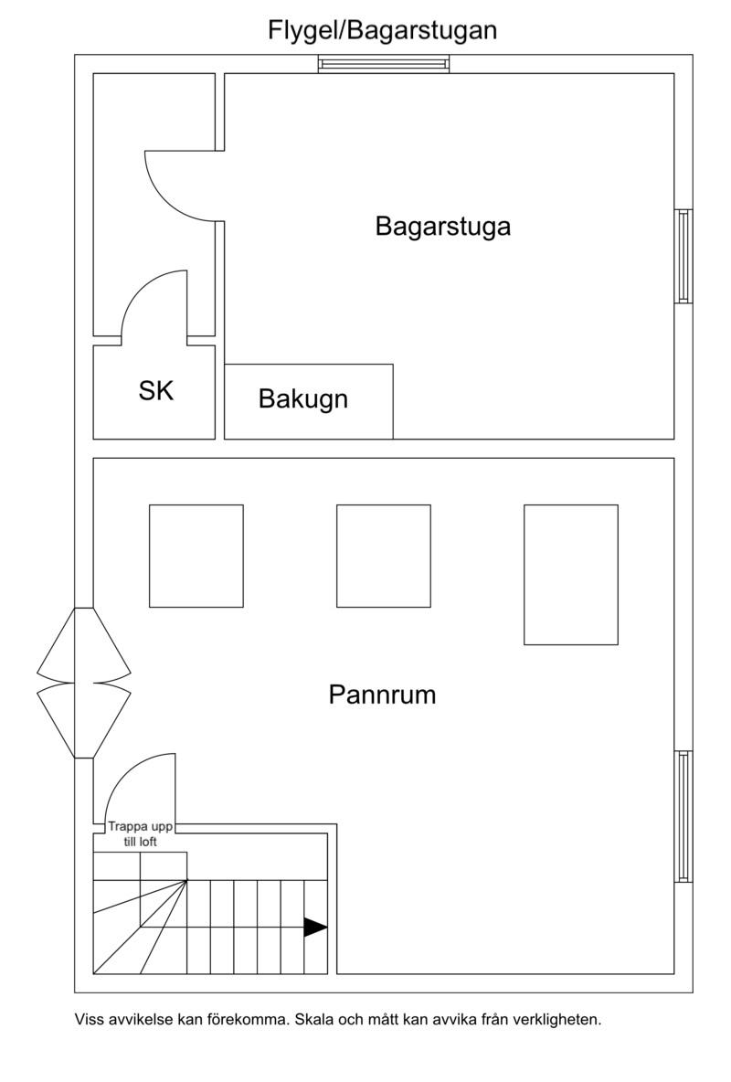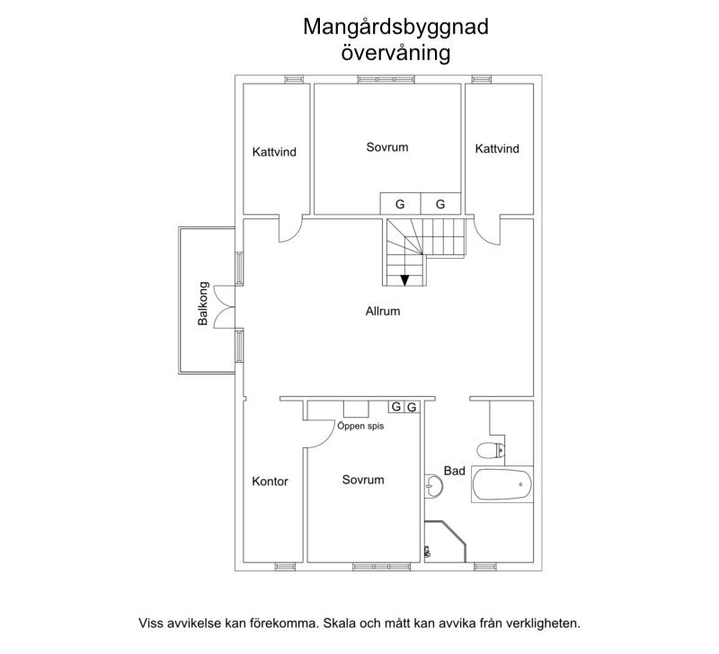 | Badrumsrenovering | Badrummet på övre plan är av äldre standard med felaktigt monterad klämring i golvbrunn och klinker på plastmatta samt otäta mattskarvar i anslutande skrubb (förhöjd fuktrisk). | Renovering av standard badrum (10.0 m²) inkl. nytt tätskikt, övre plan | Begär offert och be entreprenör särskilt bedöma golvbrunn, fall och konstruktionen runt inbyggt badkar/scrubb. | 290 000 kr |