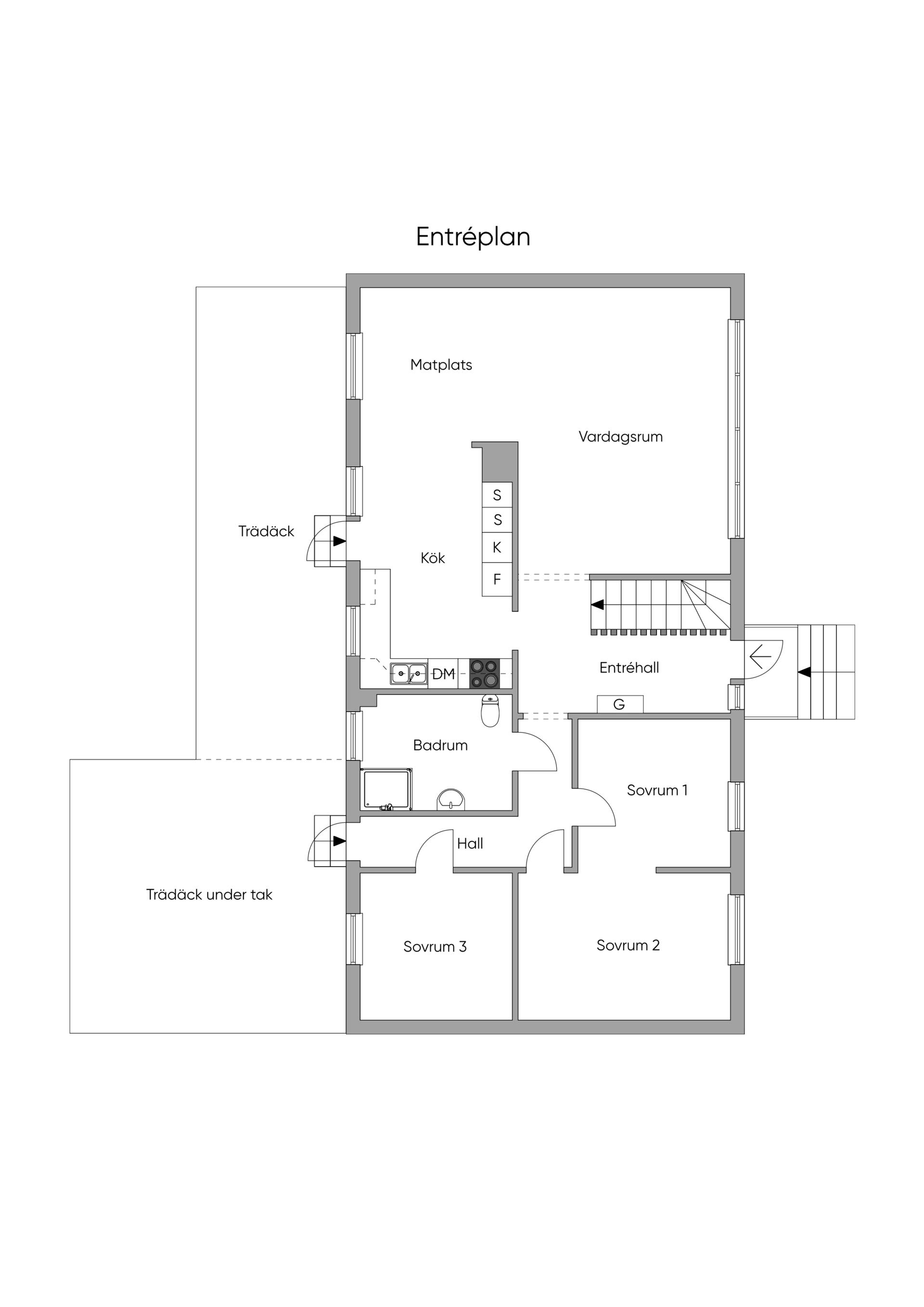 Beskrivning: Inreda vind till boyta (45.0 m²), med ny trappa och tillträde