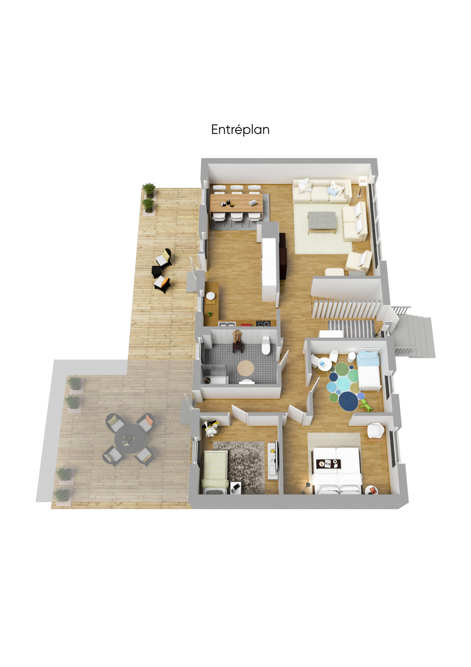 | Inreda vinden | Inreda vind till boyta (45.0 m²), med ny trappa och tillträde | Kontrollera vindens invändiga höjd och takstolarnas konstruktion med en byggnadsingenjör för att se om det krävs ingrepp i bärigheten. | 850 000 kr |