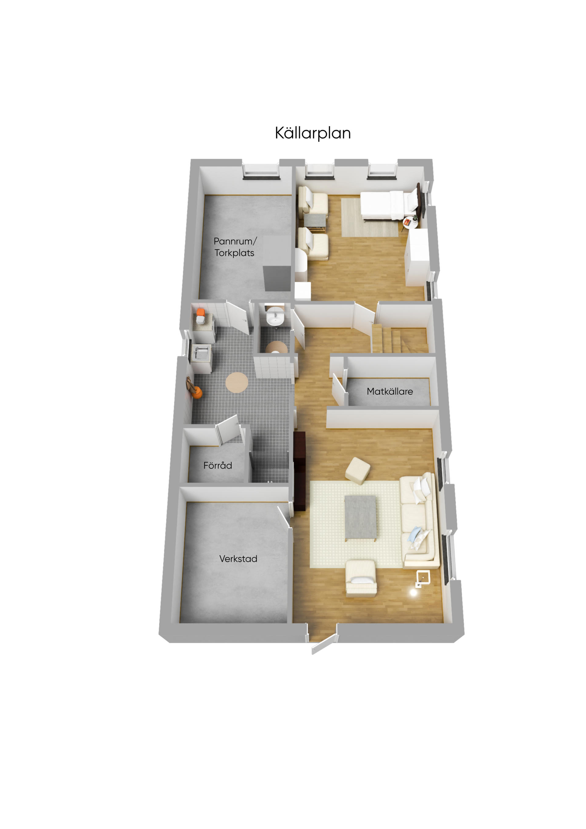 | Renovering av tvättstuga | Tvättstugan i källaren ser äldre ut (plastmatta/plastmatta) och är ett våtutrymme med dusch där tätskikt ofta når teknisk livslängd inom 25–30 år. | Renovering av standard tvättstuga (10.0 m²) inkl. tätskikt och brunn | Fråga säljaren om renoveringsår och golvbrunnens typ/ålder; ta in offert om den är äldre eller om fukt/missfärgningar/lukt noteras. | 190 000 kr |