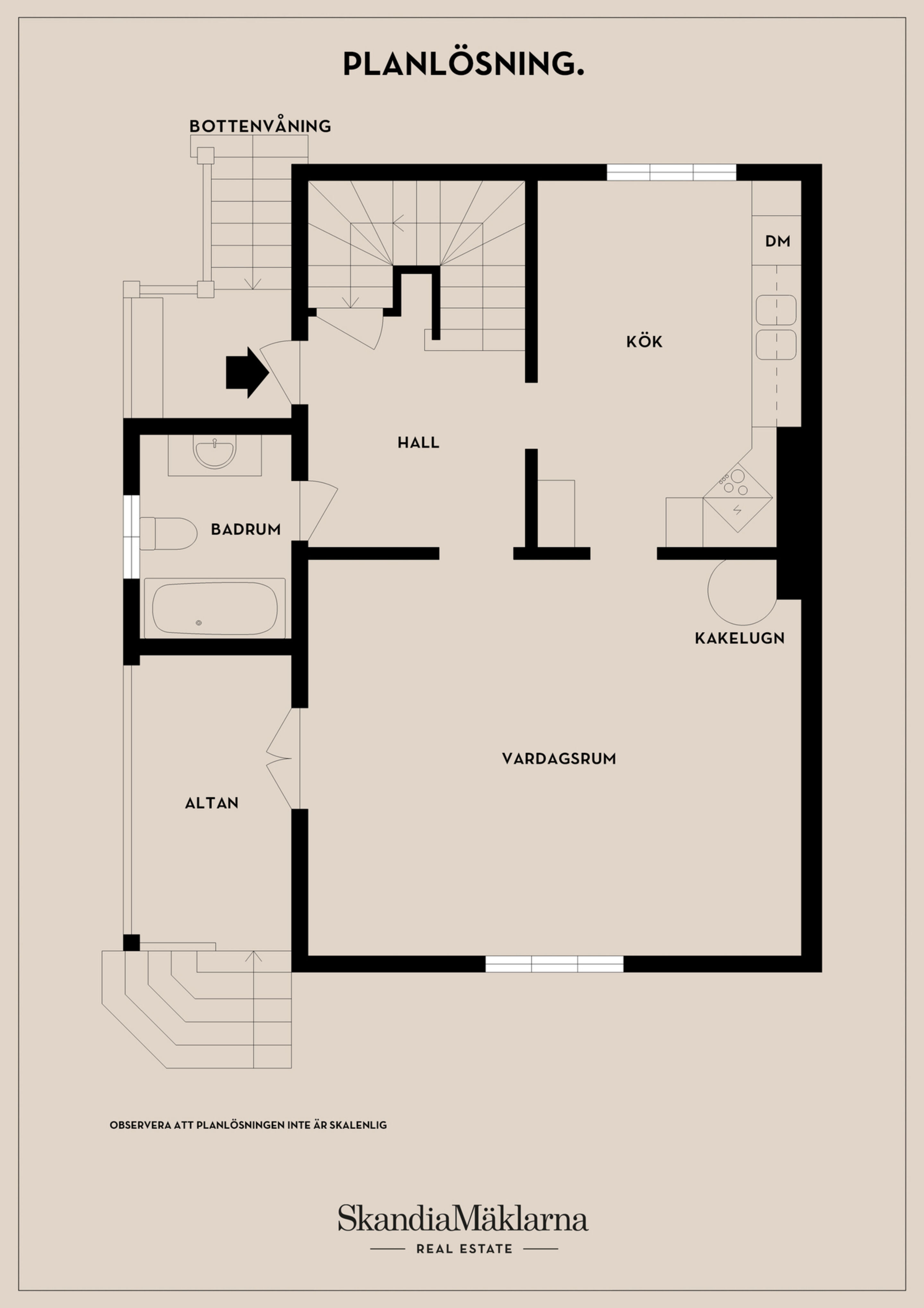 | Brandskyddskontroll eldstad och skorsten | Eldstad (kakelugn) finns men brandskyddsprotokoll saknas och kontrollintervall är okänt. | Brandskyddskontroll av 1 eldstad(er) och tillhörande rökkanaler | Be säljaren om senaste protokoll, annars boka kontroll via sotare/kommun. | 2 500 kr |