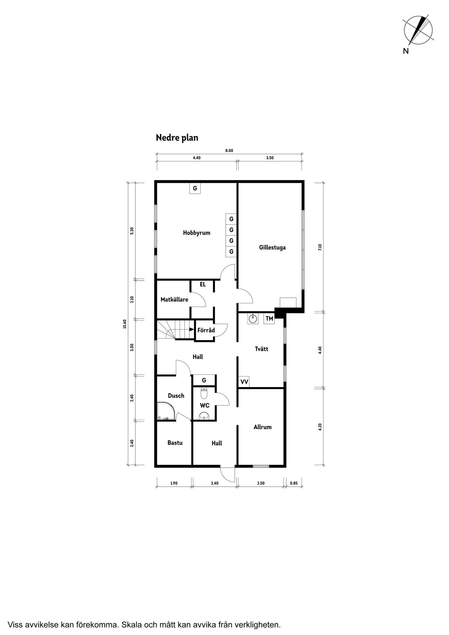 Nästa steg: Kontrollera vid visning var marken lutar mot huset och hur kondensvattnet leds; ta in markentreprenör för förslag.
